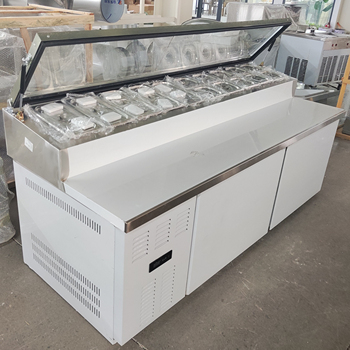 Kommerzieller Under counter Pizza Chiller Kühlschrank Salat gekühlter Prep Tisch mit Top Display Schublade