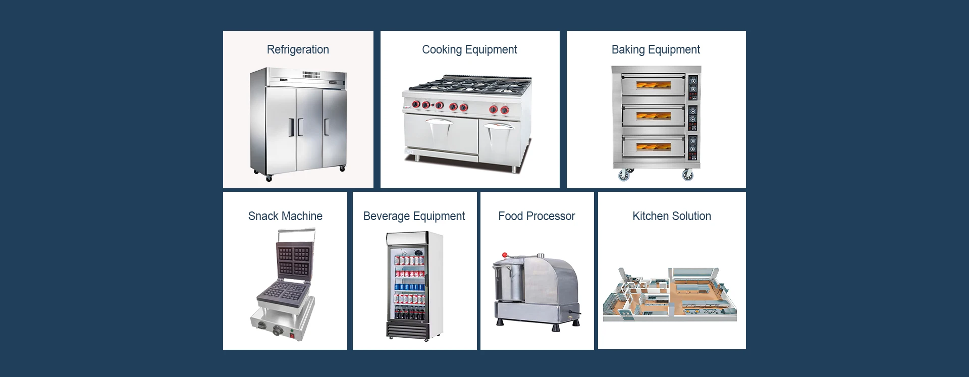 Productos principales:Solución integral de cocina, equipo de cocina comercial, equipo de cocina, equipo de refrigeración, equipo de panadería